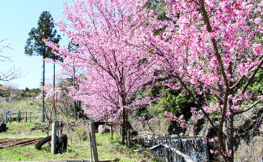 花咲く里山には、この地の特有品種である大雄紅桜を始め