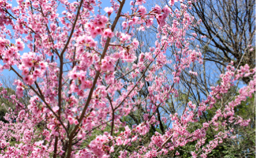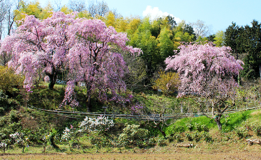 花咲く里山には、この地の特有品種である大雄紅桜を始め